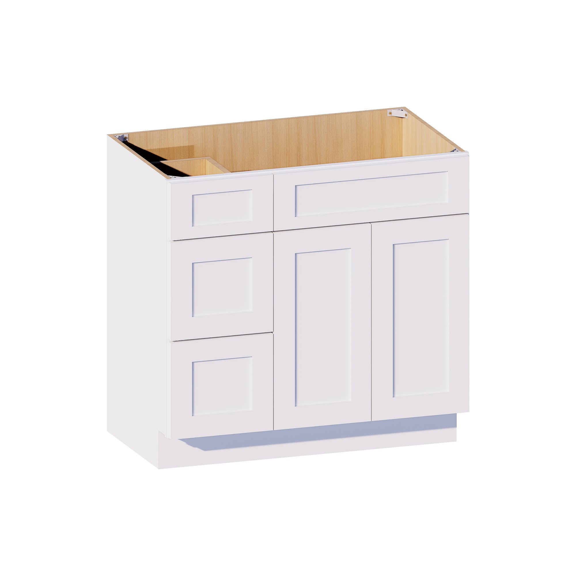 • Build: Solid Wood Fronts, ¾" Face Frame, 5-Piece Shaker Doors