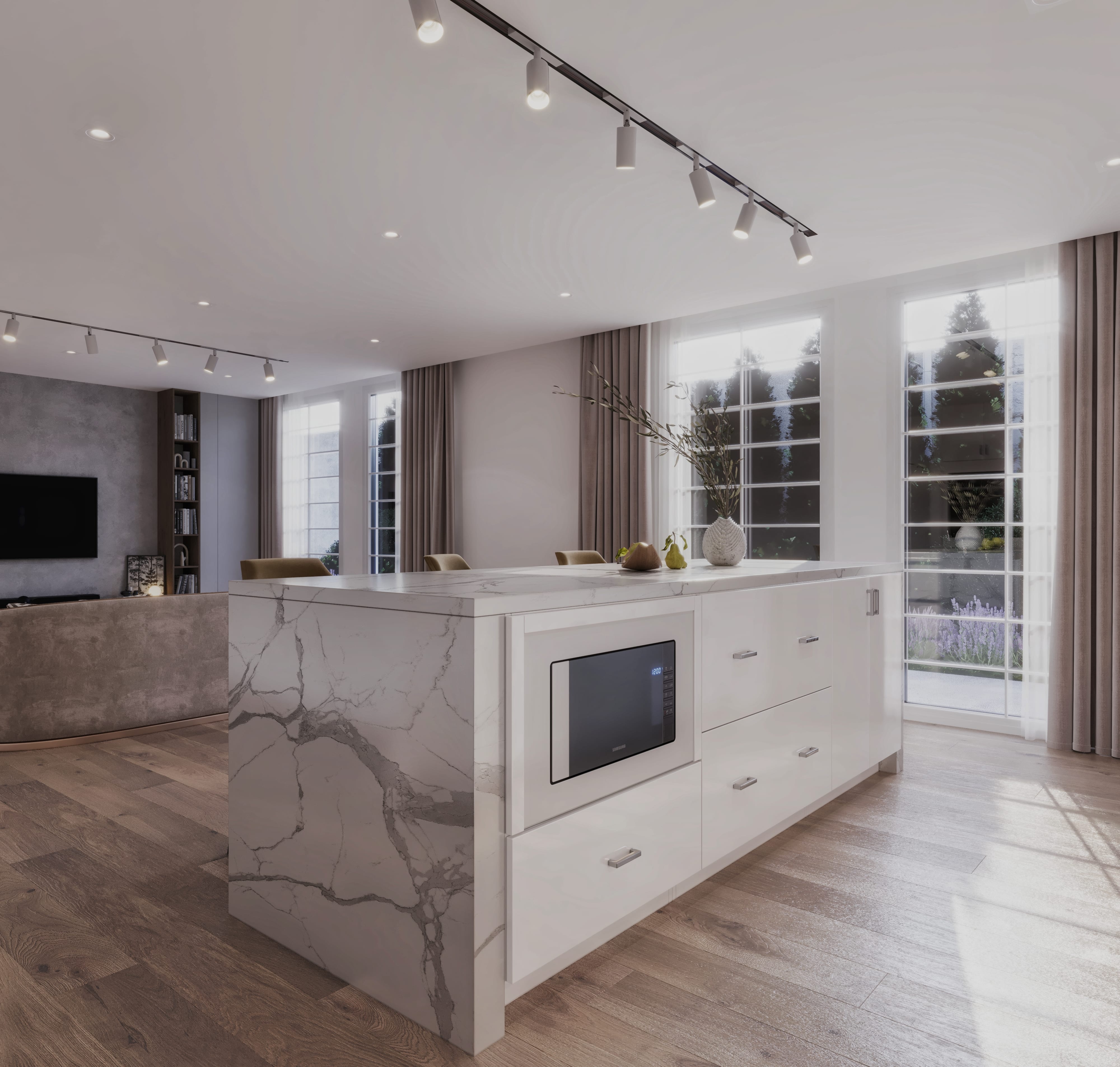 A robust finish achieved with Sherwin-Williams paint safeguards the wood against moisture, stains, and scratches. Both exterior sides of the cabinets are painted for a consistent look, while the interior is elegantly finished with birch veneered plywood.
