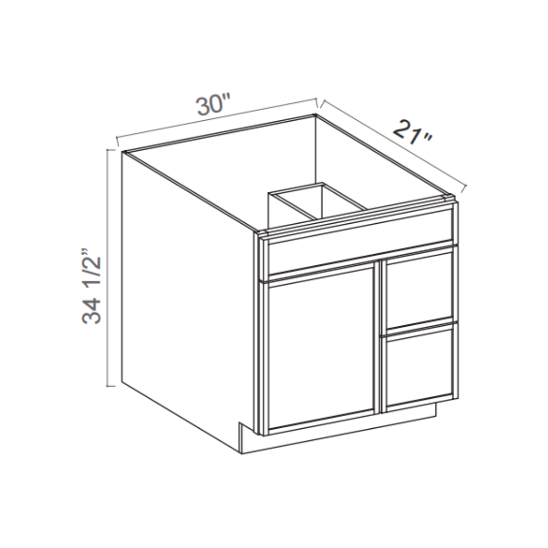Slim White Oak - 30"W Offset-Sink Vanity Combo Cabinet (Drawer on Right)