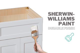A robust finish achieved with Sherwin-Williams paint safeguards the wood against moisture, stains, and scratches. Both exterior sides of the cabinets are painted for a consistent look, while the interior is elegantly finished with birch veneered plywood.